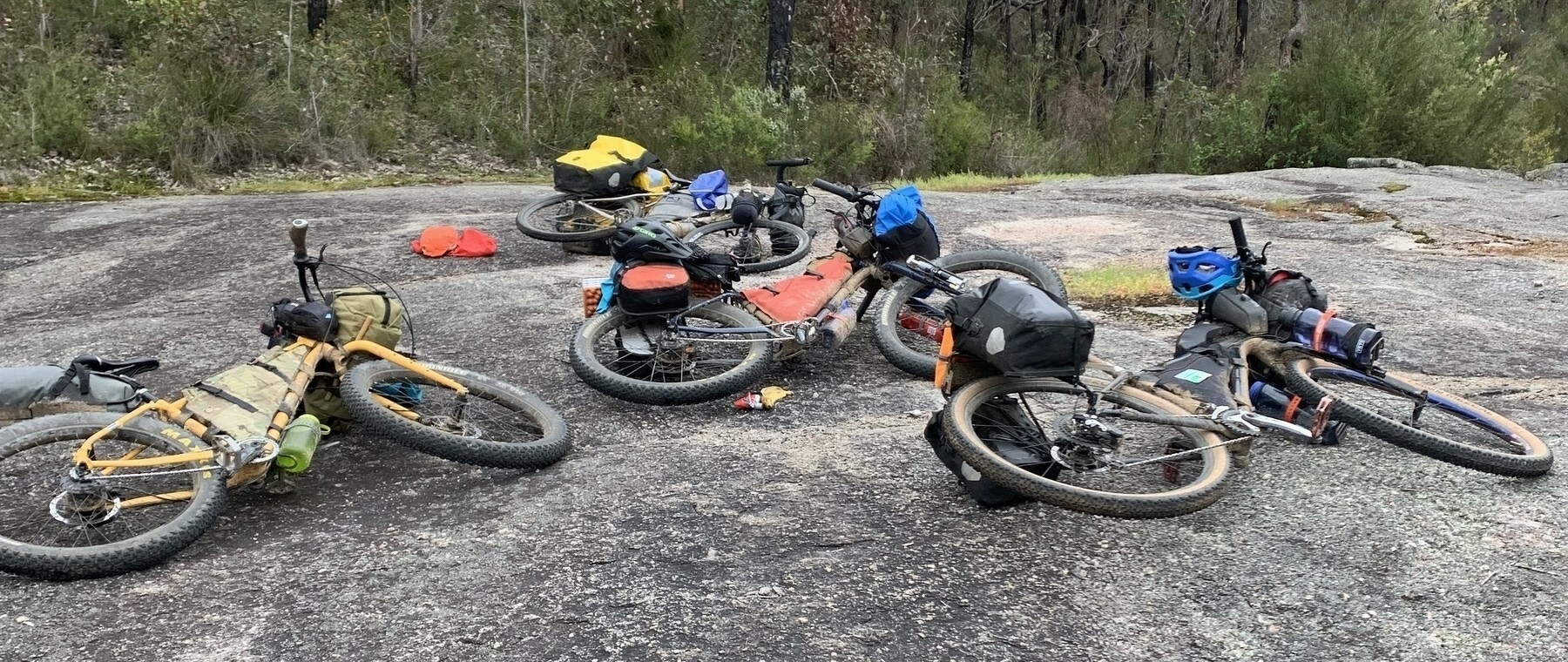 Every hut has water tanks with usable water (after treatment). So this means that it is rare to go more than 40km on the trail without the chance to refill your bottles. I carried more than 3L of water at the start of most days (two 1.5 litre bottles, one on each fork blade, and one standard 750mL bidon in a pouch on the handlebars), but usually topped off my bottles at lunchtime so there was never any reason to ration my water intake as we rode. This is an under-appreciated benefit, always having access to water.
